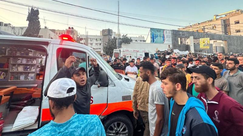 وقال مكتب الإعلام الحكومي «لحماس» استهدف الاحتلال بصاروخ موكب سيارات الإسعاف الذي يقل مصابين قبل تحركه باتجاه معبر رفح في الجنوب. وأكدت وزارة الصحة في غزة مقتل عشرات الأشخاص جراء قصف إسرائيلي على مدخل مستشفى الشفاء الطبي بغزة.