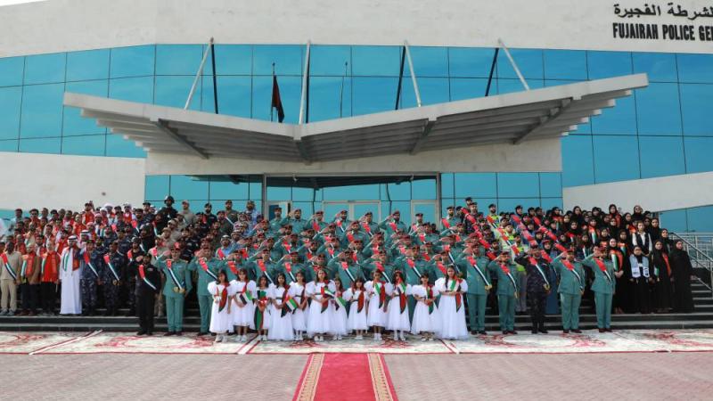 وقام العميد محمد بن نايع الطنيجي نائب القائد العام لشرطة الفجيرة، برفع العلم على مبنى القيادة بحضور المديرين العامين ومديري الإدارات ورؤساء الأقسام والضباط وضباط الصف والأفراد والعنصر النسائي، بمشاركة عدد من طالبات مدرسة الفجيرة للتعليم الأساسي حلقة أولى وسط عروض وفقرات استعراضية ابتهاجاً بهذه المناسبة الوطنية.