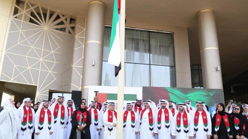 وقام حميد محمد القطامي، رئيس مجلس أمناء مؤسسة حمدان بن راشد آل مكتوم للعلوم الطبية والتربوية برفع العلم وسط الحضور.