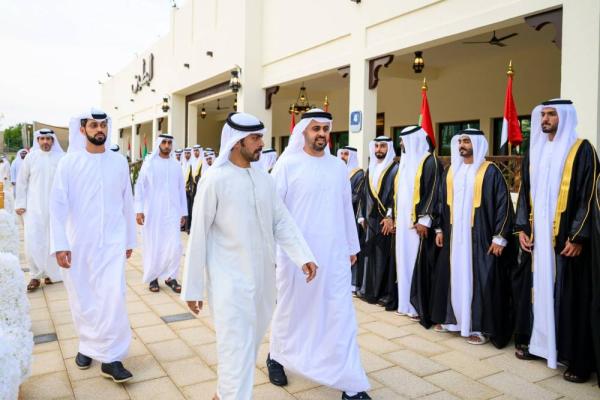 من جانبهم، أعرب ذوو العرسان عن سعادتهم وفرحتهم بمشاركة سموّ ولي عهد أبوظبي والشيوخ مناسبتهم العزيزة، وتخلَّل الحفل أهازيج تراثية وعروض للفنون الشعبية.