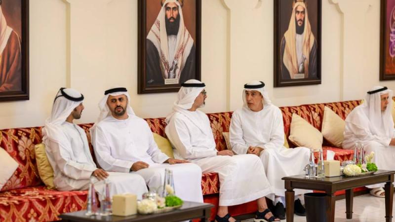 وحضر حفل الاستقبال، الذي نظَّمته مجالس أبوظبي بديوان الرئاسة، سموّ الشيخ ذياب بن محمد بن زايد آل نهيان، رئيس مكتب الشؤون التنموية وأسر الشهداء في ديوان الرئاسة، والشيخ خليفة بن طحنون بن محمد آل نهيان، رئيس ديوان ولي العهد، وعددٌ من كبار المسؤولين وأقارب العرسان وجمعٌ من المدعوّين.