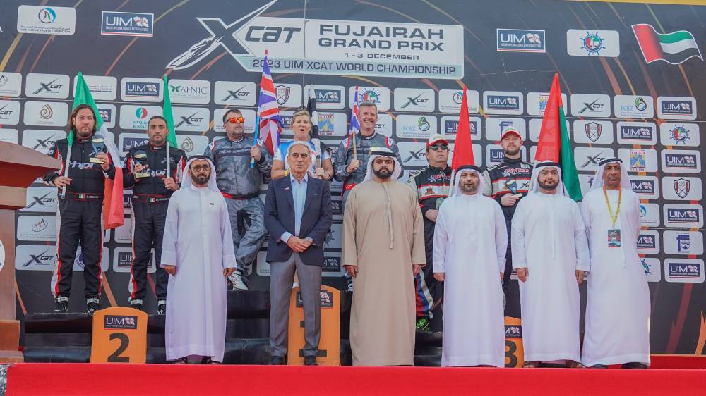 وتوجه مدير عام نادي الشارقة الدولي للرياضات البحرية بالشكر والتقدير إلى سمو الشيخ محمد بن حمد الشرقي، ولي عهد الفجيرة، على رعايته جائزة الفجيرة الكبرى للزوارق السريعة -إكس كات- وإلى أسرة نادي الفجيرة الدولي للرياضات البحرية برئاسة الشيخ سيف بن حمد بن سيف الشرقي، وإلى اللجنة المنظمة على جهودهم الحثيثة وتنظيمهم المميز والرائع.