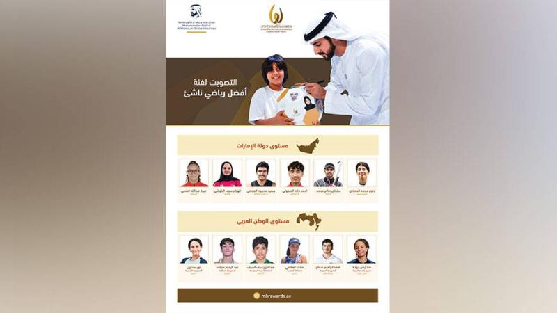 وأعلنت الجائزة أسماء 6 رياضيين ناشئين إماراتيين و6 رياضيين ناشئين عرب المرشحين للفوز في الدورة الثانية عشرة للجائزة وفتحت الباب للجمهور للتصويت من أجل تحديد الترتيب النهائي لهم وذلك عبر قناة دبي الرياضية والموقع الإلكتروني وتطبيق الجائزة Mbrawards بداية من 1 نوفمبر وحتى 31 ديسمبر 2023، ويتم اعتماد نتائج التصويت مع قرار لجنة التحكيم لتكريم الناشئين الفائزين حسب الترتيب النهائي يوم 10 يناير 2024 في مدينة جميرا.