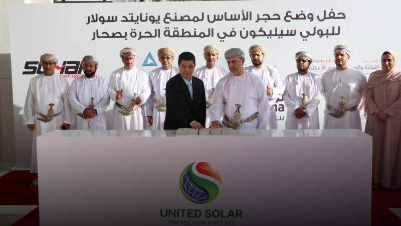 احتفلت شركة يونايتد سولار للبولي سيليكون بوضع حجر الأساس لمشروع مصنع البولي سيليكون بميناء صحار والمنطقة الحرة في سلطنة عمان بإجمالي استثمار يفوق 520 مليون ريال عماني، وطاقة إنتاجية تصل إلى 100 ألف طن سنويًّا، ويُتوقع افتتاحه خلال العام 2025م.