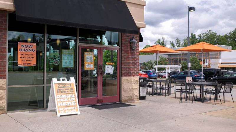 لافتة توظيف أمام أحد المطاعم في لويزفيل، كنتاكي (رويترز)