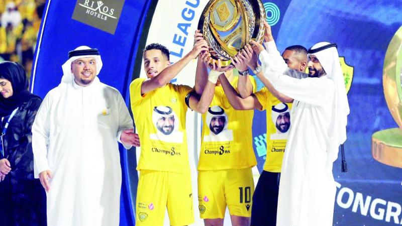 أحمد بن راشد يرفع درع الدوري مع كابتن الوصل وبحضور الجنيبي