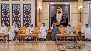 حضر الفريق سمو الشيخ سيف بن زايد آل نهيان، نائب رئيس مجلس الوزراء، وزير الداخلية، حفل الاستقبال الذي أقيم بمناسبة زفاف أحمد سعيد درويش بالحداد الرميثي، على كريمة حميد سعيد بولاحج الرميثي، وذلك بمجلس المشرف في أبوظبي.