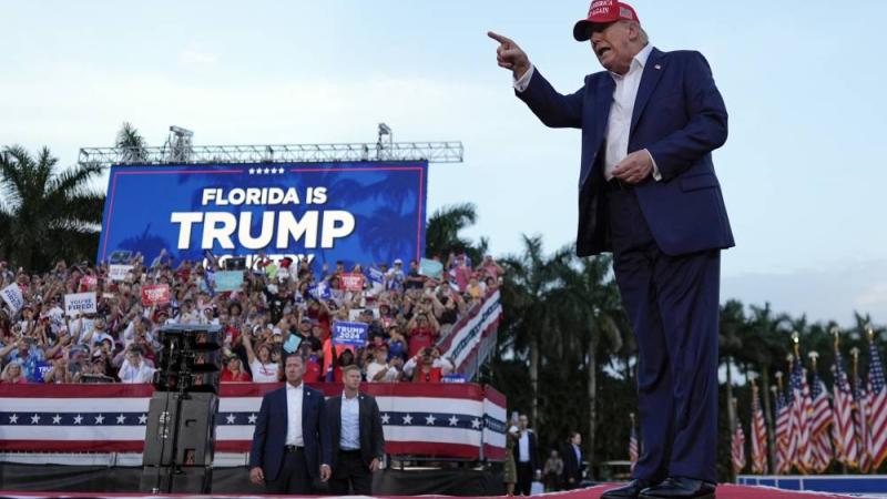 ترامب يحضر تجمعاً انتخابياً حاشداً لأنصاره في ميامي بولاية فلوريدا (أ ب)