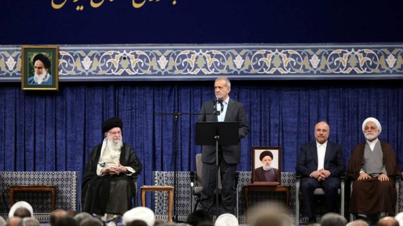 وأقيمت مراسم المصادقة على تولي بزشكيان الرئاسة في طهران، وأعلن خلالها خامنئي تنصيب الرئيس التاسع للجمهورية الإسلامية منذ تأسيسها عام 1979. وحظي بزشكيان، البالغ من العمر 69 عاماً، بتأييد الرئيسين السابقين محمد خاتمي وحسن روحاني.