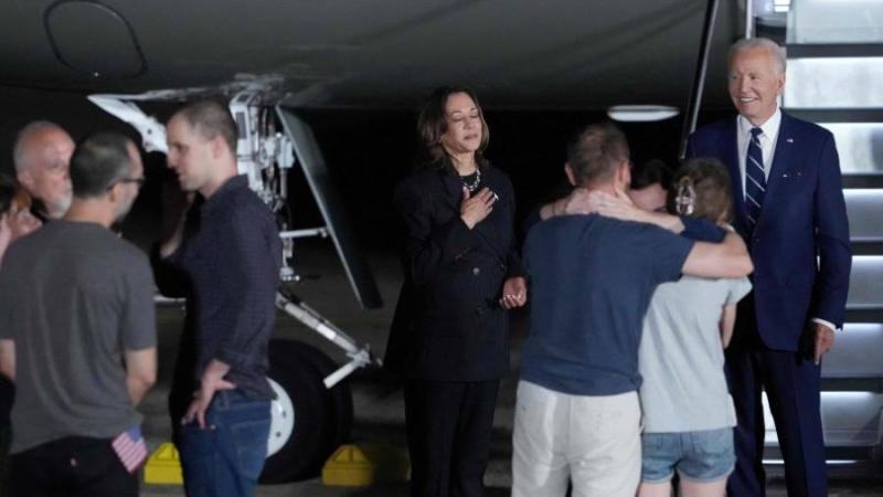 واستقبل الرئيس الأمريكي جو بايدن ونائبته كمالا هاريس الصحفي إيفان غيرشكوفيتش وأمريكيين آخرين أول أمس الخميس لدى وصولهم إلى أراضي الولايات المتحدة عقب إفراج روسيا عنهم، في إطار صفقة كبيرة لتبادل السجناء. واستُقبل مراسل «وول ستريت جورنال» غيرشكوفيتش وعنصر المارينز السابق بول ويلان والصحفية ألسو كورماشيفا بترحيب حار من عائلاتهم وأصدقائهم لدى نزولهم من الطائرة قبل أن يعانق كل منهم بايدن وهاريس. وقال بايدن للصحفيين في قاعدة أندروز المشتركة قرب واشنطن «إنه شعور رائع طال انتظاره». كما ستتسلم الولايات المتحدة سجيناً رابعاً من بين الذين أفرج عنهم، هو فلاديمير كارا - مورزا، الروسي المعارض للكرملين الذي يحمل إقامة في الولايات المتحدة، لكنه سيعود بشكل منفصل إلى الولايات المتحدة.