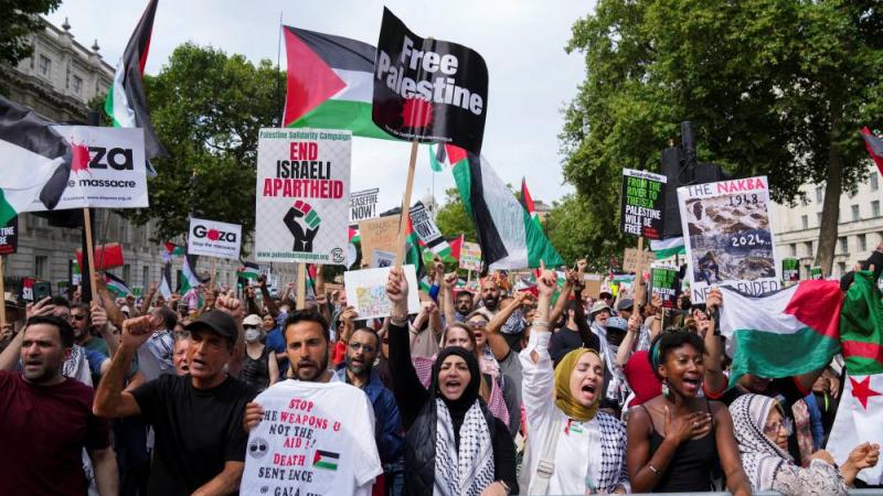 وتظاهر عشرات الآلاف في العاصمة البريطانية لندن. وجاب المنظمون الشوارع قادمين من مختلف المدن والبلدات البريطانية، لمطالبة الحكومة الجديدة بقيادة حزب العمال، بوقف تسليح إسرائيل ودعمها في الحرب على غزة.