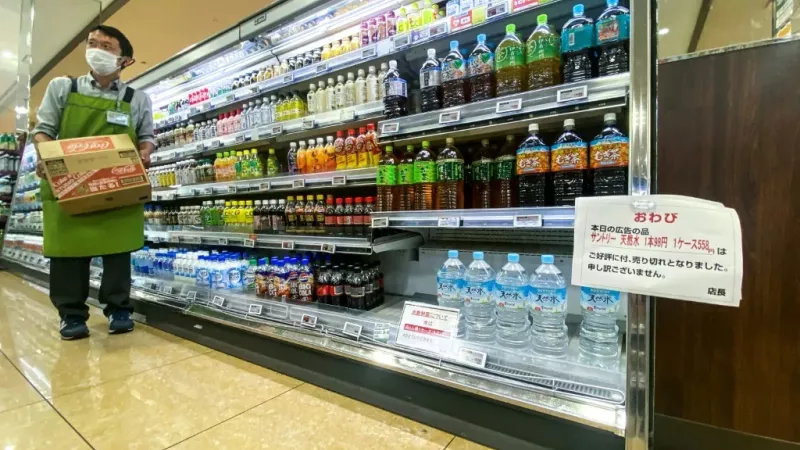 في متجر في طوكيو السبت، عُلقت لافتة تعتذر الى الزبائن لانقطاع بعض المنتجات بسبب «تقارير إعلامية عن احتمال حدوث زلزال».