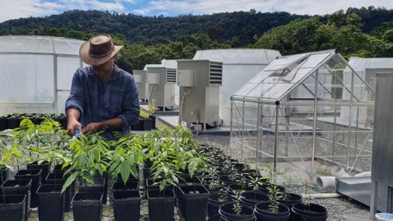 ألكسندر تشيزمان يعتني بشتلات في مركز أبحاث
