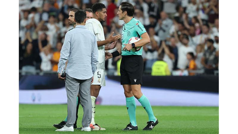 خرج الإنجليزي جود بيلينغهام لاعب ريال مدريد عن النص بعد رفع الحكم جوزيه لويس مونويرا مونتيرو البطاقة الصفراء بوجهه في مباراة الفوز على اسبانيول.
