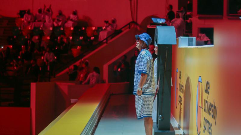 شهد مركز التنس الدولي بمدينة زايد الرياضية، مساء الثلاثاء، حفل افتتاح النسخة الأولى من بطولة الألعاب الجامعية، وذلك بحضور الشيخ محمد بن خليفة بن محمد بن خالد آل نهيان، والشيخ راشد بن حميد النعيمي، نائب رئيس اللجنة الأولمبية الوطنية، والدكتور أحمد بالهول الفلاسي، وزير الرياضة، والدكتور عبد الرحمن العور، وزير الموارد البشرية والتوطين ووزير التعليم العالي والبحث العلمي بالإنابة، والدكتور سلطان النيادي، وزير دولة للشباب، وعيسى هلال الحزامي، رئيس مجلس الشارقة الرياضي، وعارف حمد العواني، الأمين العام لمجلس أبوظبي الرياضي، وغانم مبارك الهاجري، مدير عام الهيئة العامة للرياضة، وفارس المطوع، الأمين العام للجنة الأولمبية الوطنية، والشيخ سهيل بن بطي آل مكتوم، الأمين العام لاتحاد الإمارات الرياضي لمؤسسات التعليم المدرسي والجامعي، وحميد عبدالله الشمري، نائب الرئيس التنفيذي لمجموعة «مبادلة» والرئيس التنفيذي للشؤون المؤسسية والموارد البشرية في المجموعة، وناصر علي النبهاني، العضو المنتدب لشركة «سلوشنز بلس» إحدى شركات مبادلة للاستثمار، بالإضافة إلى عدد من ممثلي الاتحادات الرياضية بدولة الإمارات.