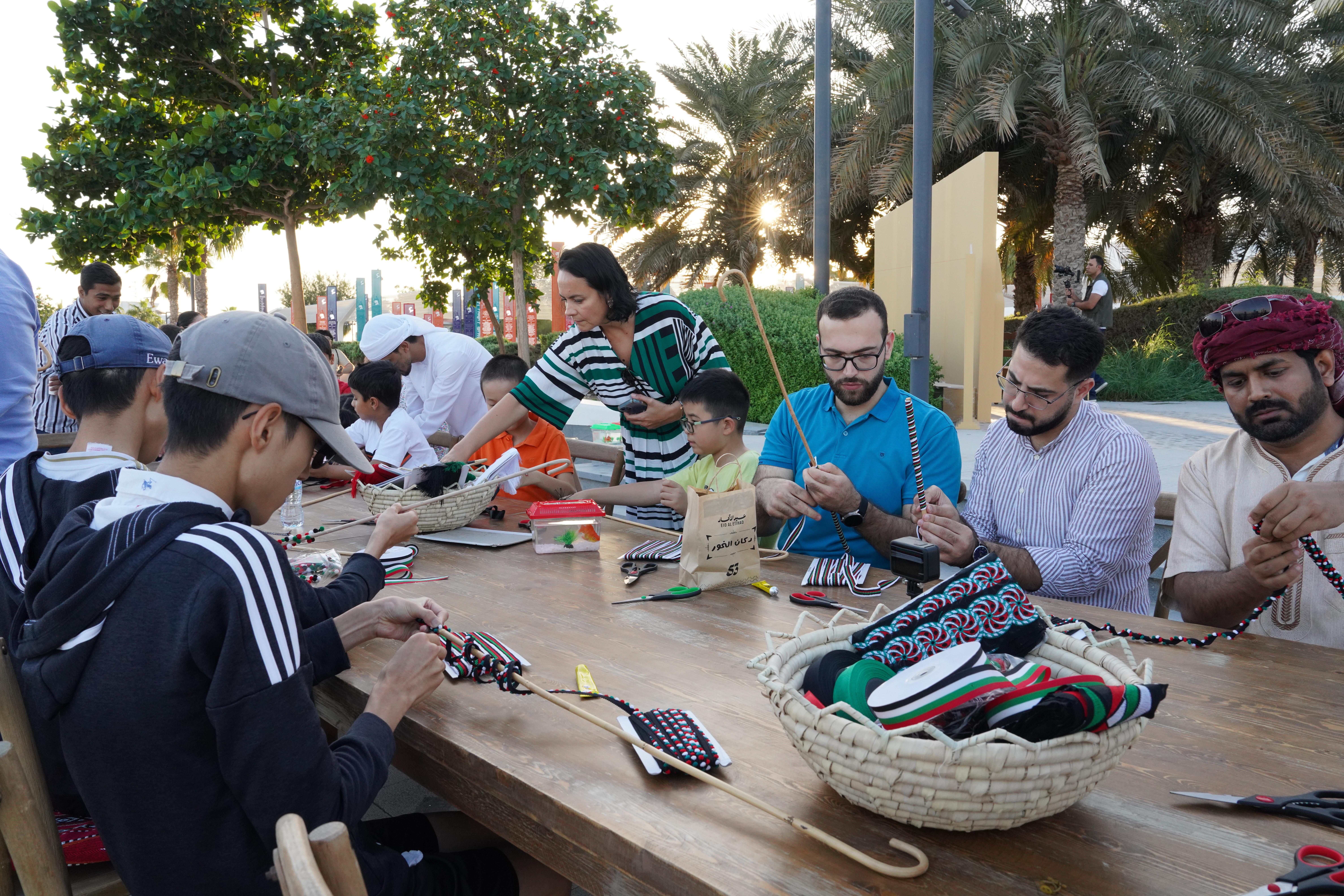 كما أبدع الأطفال في الرسم والتلوين على الفخار والقبعات والحقائب والمراوح اليدوية «المهفّة» بألوان علم الإمارات، وورشة إعادة التدوير، والفخاريات، والطباعة على أكياس المخمل والزيّ التراثي، وورشة الزراعة والاستدامة.