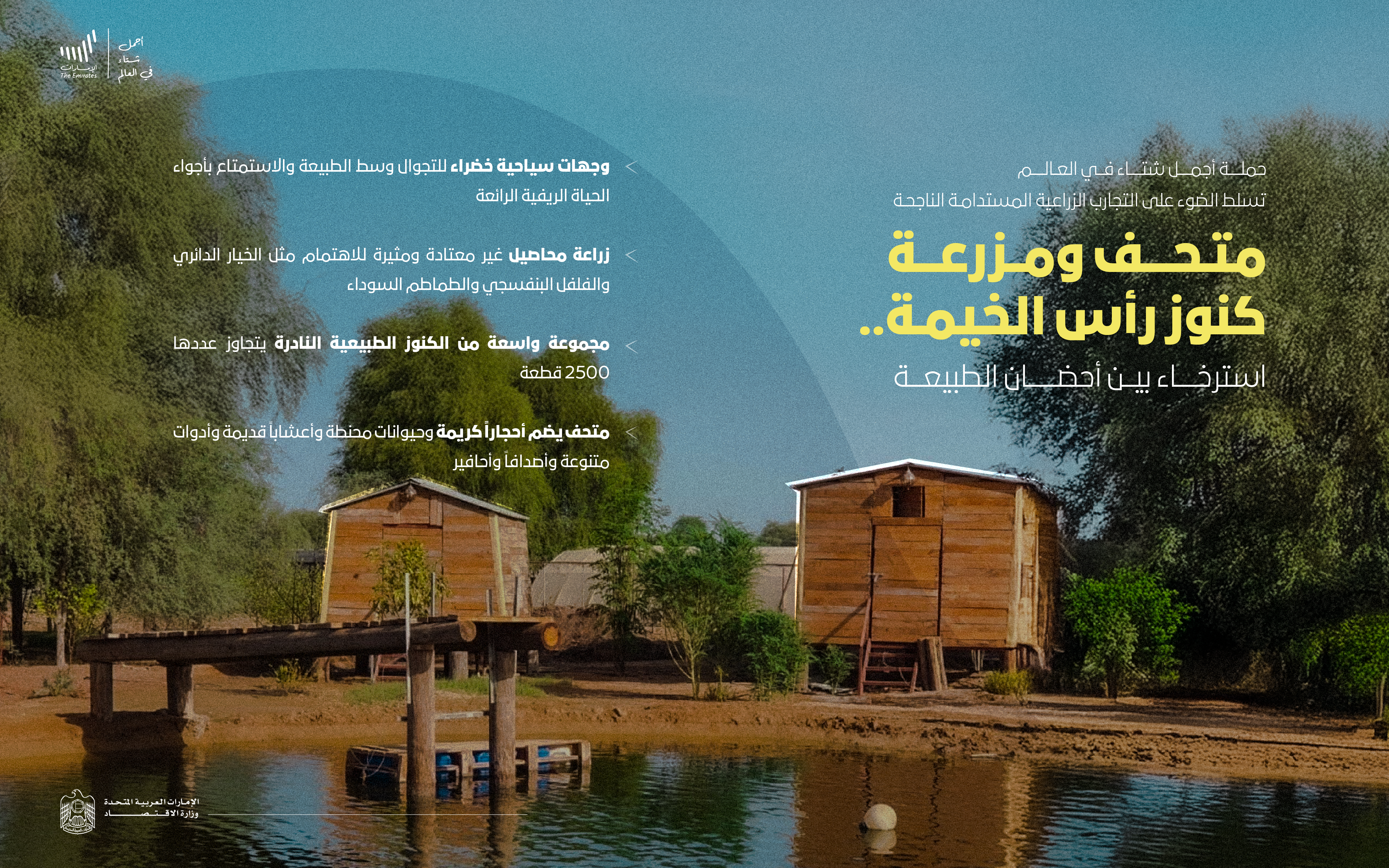 شكّل الوعي البيئي لدى أبناء الإمارات، حافزاً مستمراً لمختلف الأجيال، نحو تقديم كل ما من شأنه العناية بالبيئة والحفاظ عليها، وإبراز الكنوز الطبيعية كلوحات فنية تستقطب الزوار، وتعمل على ترسيخ حب الطبيعة لدى أفراد المجتمع، ويبرز من بين هذه المشاريع النوعية متحف ومزرعة كنوز رأس الخيمة الطبيعية الواقعة في منطقة المقورة القريبة من مطار رأس الخيمة، والتي قرر مبدعها المهندس طارق السلمان تخصيصها كمنطقة طبيعية من ناحية الزراعة والحيوانات، وفي المكان نفسه خصص مكاناً لمتحف وضع فيه كل التحف والمقتنيات الطبيعية 100%.