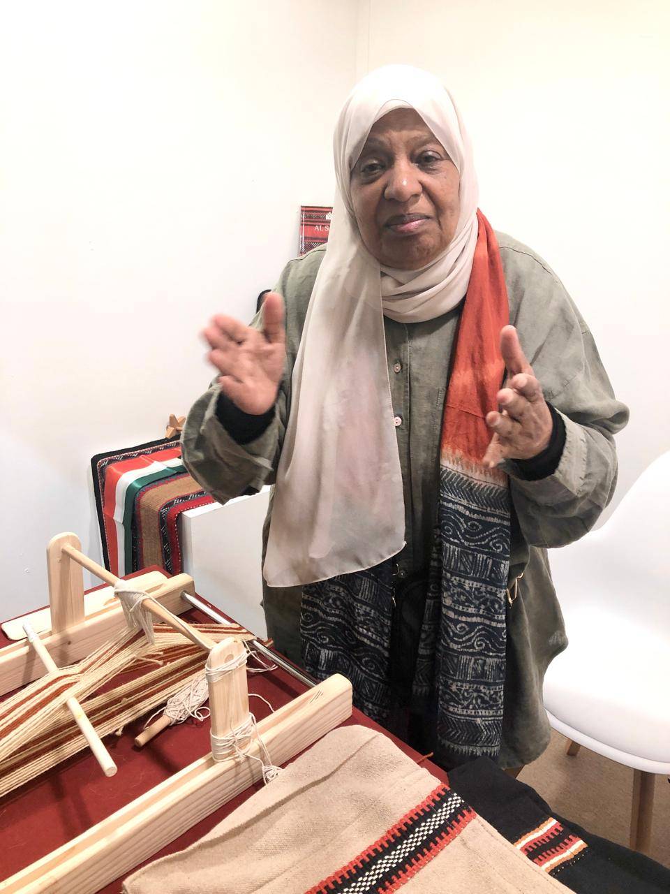 نوال إبراهيم العطية، الحرفية المتخصصة في «السدو»، جاءت للمشاركة في أيام الشارقة للتراث ضمن الجمعية الكويتية للتراث، وهي تعمل في هذا المجال منذ أكثر من ثلاثة عقود. وأوضحت أن المرأة العربية تبدأ ممارسة حرفة «السدو» منذ سن السابعة، حيث تكون بلغت مرحلة الإدراك والوعي، وخلال فترة قصيرة، يمكنها حياكة خيمة الشَعَر الكبيرة، التي تقي من حرارة الشمس وبرد الصحراء.