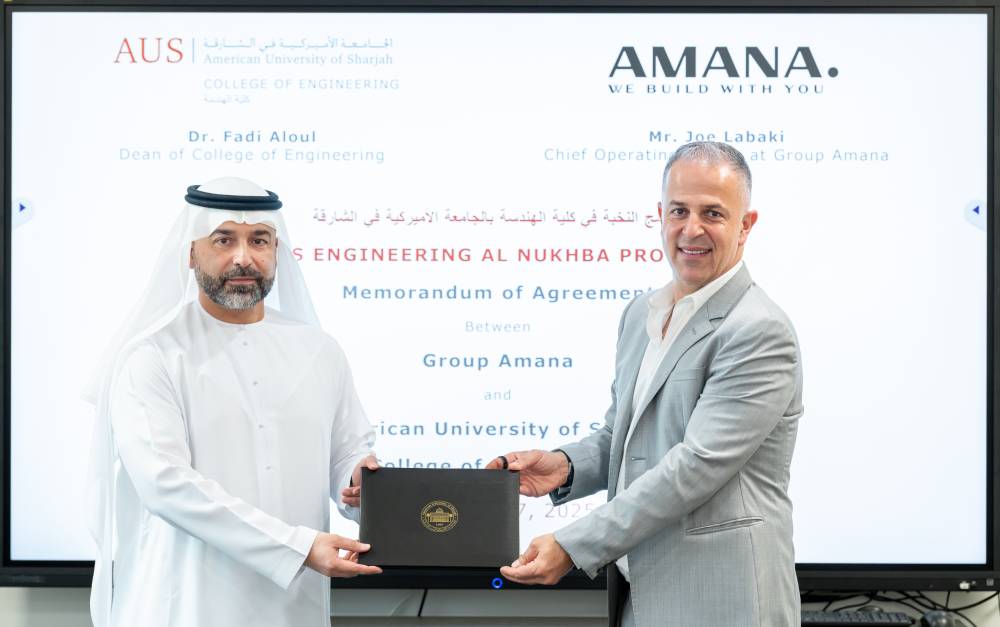 رحّب برنامج النخبة في كلية الهندسة في الجامعة الأمريكية في الشارقة، بانضمام مجموعة «أمانة»، الشركة الرائدة في المنطقة في الإنشاءات والتصميم، لتكون شريكاً صناعياً جديداً في البرنامج، تهدف الشراكة إلى تقديم فرص تدريبية احترافية وفرص تطوير مهنية وبحثية لطلبة الجامعة، ما يعزز الروابط بين القطاعين الأكاديمي والصناعي.