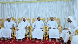حضر مجلس العزاء بجانب سموه كل من: الشيخ خالد بن عبدالله القاسمي رئيس هيئة الشارقة للموانئ والجمارك والمناطق الحرة، والشيخ سعود بن سلطان بن محمد القاسمي مدير عام دائرة الشارقة الرقمية، والدكتور عبدالله بلحيف النعيمي رئيس المجلس الاستشاري لإمارة الشارقة، وعدد من الشيوخ وذوي الفقيدة والمعزين.
