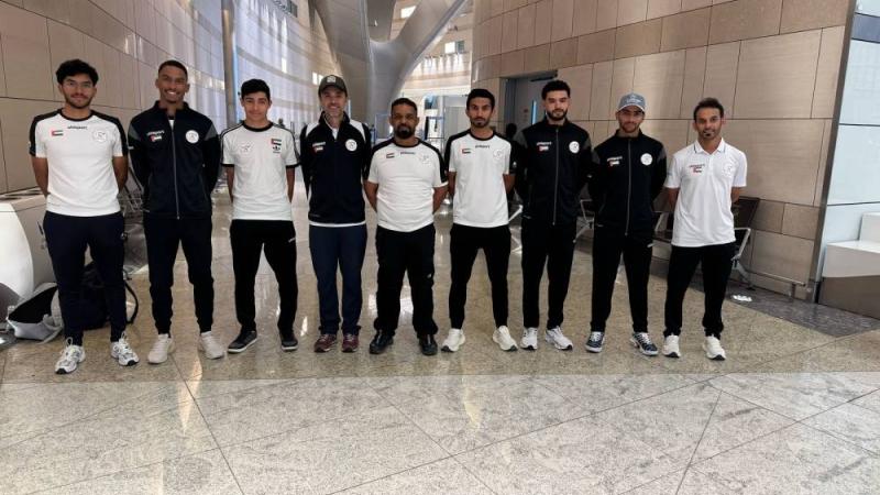 وتضم بعثة المنتخب بدر ثاني مدرباً، وقائد الفريق أحمد المنصوري، محمد العليلي، محمد محراب، عبدالله الحمادي، حمد المحيربي، يوسف أميري، راشد سويدان وعبد العزيز الهاجري.