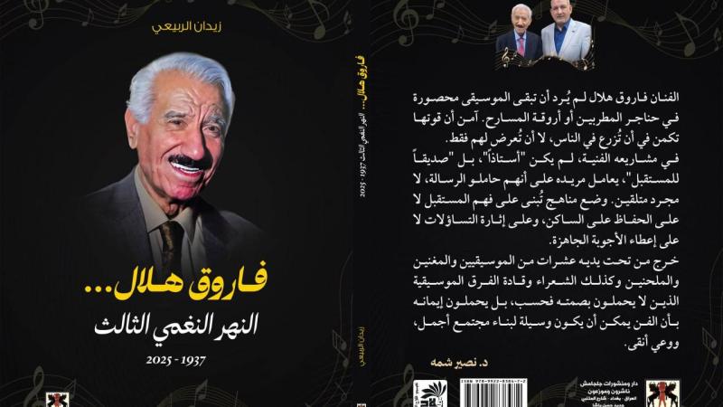 وثّق الملحن والمطرب العراقي فاروق هلال، الذي يبلغ من العمر 91 عاماً، حياته الفنية بكتاب حمل عنوان «فاروق هلال.. النهر النغمي الثالث» من تأليف زيدان الربيعي.
