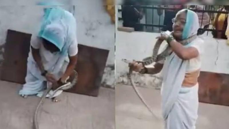 في مشهد نادر لرباطة الجأش والشجاعة، أثارت مسنة من قرية أمبولي في منطقة مولشي بالهند، دهشة رواد الإنترنت بعد أن تعاملت بثقة تامة مع ثعبان غير سام عُثر عليه في منزلها.