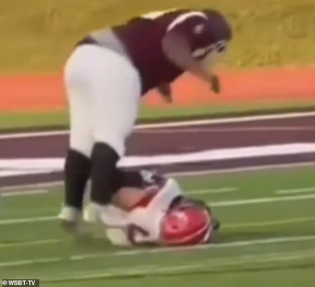 أقدم لاعب في ناشئة فريق ثانوية كالامازوو سنترال لكرة القدم الأمريكية على تصرف عنيف إذ قفز بثقل جسمه على لاعب الغريم وهو ملقى في الأرض ما نجم عنه كسر في العمود الفقري في حادثة صادمة بولاية ميشيغان.