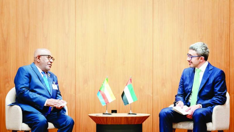 التقى سموّ الشيخ عبدالله بن زايد آل نهيان، نائب رئيس مجلس الوزراء وزير الخارجية، عثمان غزالي، رئيس جمهورية القمر المتحدة، على هامش أعمال الدورة الـ80 للجمعية العامة للأمم المتحدة في نيويورك.