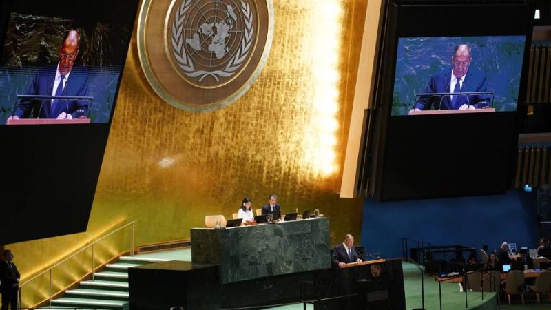 في كلمته بلاده أمام الجمعية العامة للأمم المتحدة، اعتبر لافروف أن «الناتو يعاني من ضغوط شديدة في أوروبا، وهو يخترق المحيط الهادئ وبحر الصين الجنوبي ومضيق تايوان، مقوضاً الآليات العالمية لرابطة دول جنوب شرق آسيا (آسيان)، ومشكلاً تهديدات ليس فقط للصين وروسيا، بل أيضاً لدول أخرى في المنطقة».