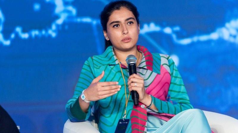 أميرة السجواني متحدثة خلال إحدى الجلسات بالمنتدى