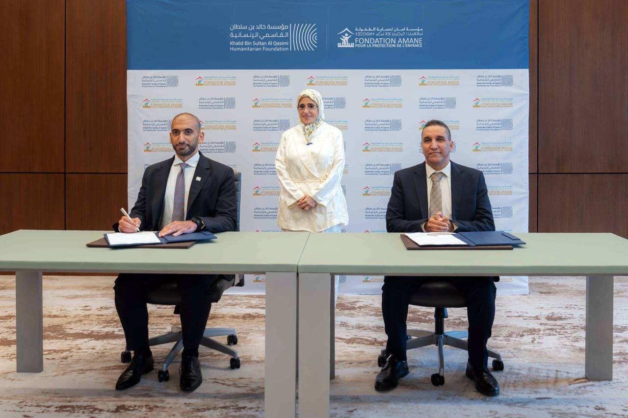 وقع الاتفاقية من جانب مؤسسة خالد بن سلطان القاسمي، عبد الله الحريمل عضو مجلس أمناء المؤسسة، ومن جانب مؤسسة أمان لحماية الطفولة، عبد الله سوسي رئيس المؤسسة، بحضور عدد من كبار المسؤولين من وزارة التضامن والإدماج الاجتماعي والأسرة، ومؤسسة التعاون الوطني في المملكة المغربية.