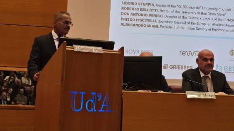 شهدت مدينة كيتي الإيطالية، حدثاً علمياً وثقافياً بارزاً، حيث أطلق الدكتور عبدالله بلحيف النعيمي، كتابه الجديد «أمّنا الأرض» خلال فعاليات المؤتمر الدولي الثاني للطب البيئي: «التعرّضات البيئية وعلم التخلّق – حماية صحة الأطفال»، الذي انعقد في قاعة غابرييلي دانونتسيو بجامعة كيتي-بيسكارا، إحدى الجامعات الرائدة عالمياً في مجال أبحاث علم التخلّق.