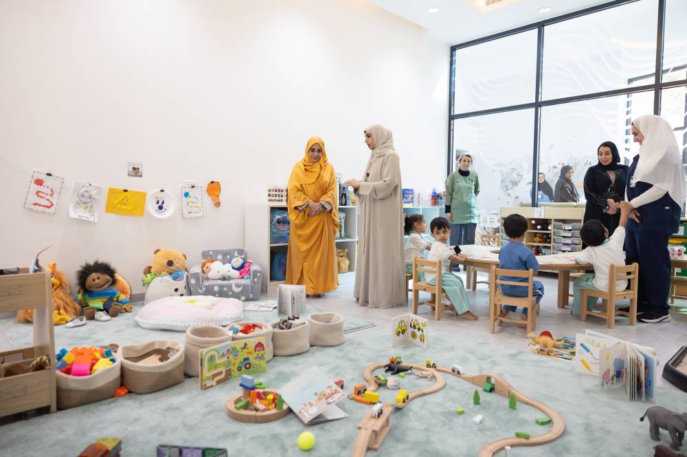 وقد استهلت سموها الزيارة بجولة في مرافق الحضانة، حيث اطّلعت خلالها على الفصول التعليمية والأساليب التربوية ضمن بيئة تفاعلية تعتمد التعلم عبر اللعب والاستكشاف، والذي يسهم في تعزيز النمو المعرفي والاجتماعي للأطفال وترسيخ مهاراتهم الحياتية منذ الصغر.