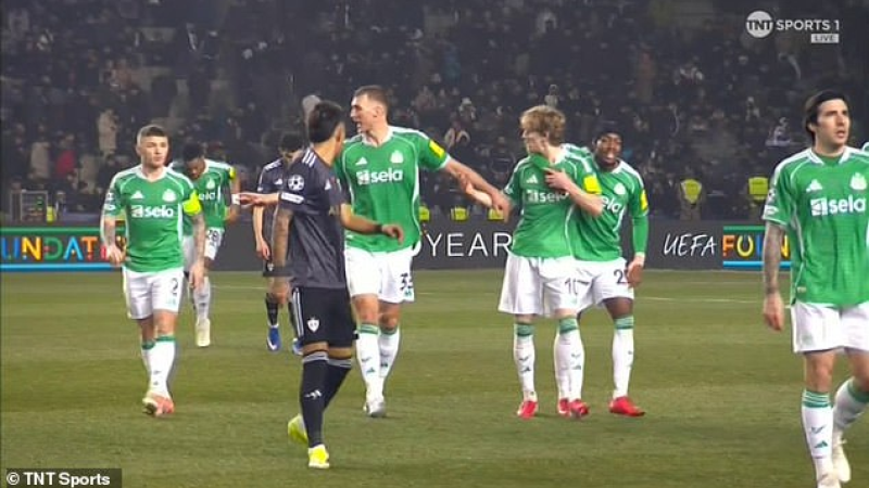التقطت الكاميرات مشادة كلامية عنيفة بين نجمي نيوكاسل الإنجليزيين أنتوني غوردن وكيران تريبييه بين شوطي مباراة الفوز بخماسية نظيفة على مضيفه قره باخ، سجل منها غوردن 4 أهداف منها هدفان بركلة جزاء.