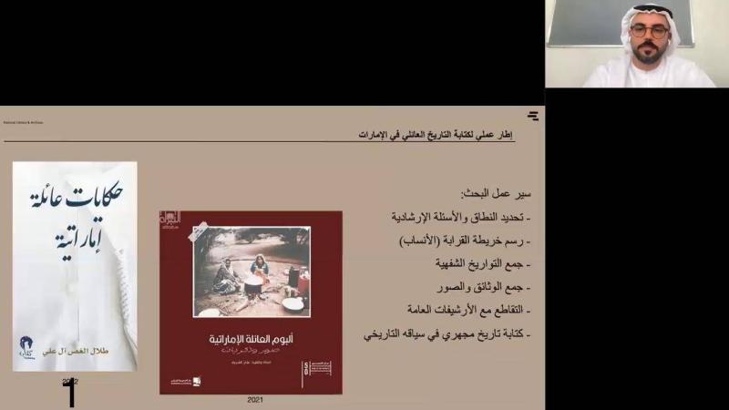 نظم الأرشيف والمكتبة الوطنية محاضرة افتراضية بعنوان «مقاربات تاريخية لكتابة تاريخ الأسرة في إمارات الساحل المتصالح (1860–1960)»، وذلك بالتزامن مع «عام الأسرة»، بهدف تسليط الضوء على أهمية توثيق التاريخ العائلي، بوصفه مدخلاً علمياً لفهم جذور المجتمع الإماراتي وتعزيز قيم الانتماء والتواصل بين الأجيال.