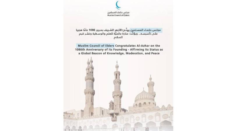 وهنأ المجلس فضيلة الإمام الأكبر الدكتور أحمد الطيب، شيخ الأزهر الشريف، رئيس المجلس، وعلماء الأزهر الشريف وطلابه وخريجيه وجميع محبِّيه حول العالم؛ بمناسبة مرور 1086 عاماً هجرياً على تأسيسه.