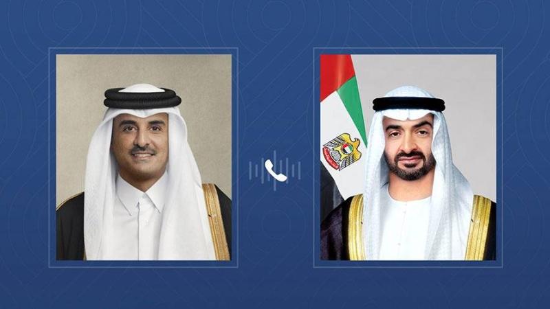 بحث صاحب السمو الشيخ محمد بن زايد آل نهيان رئيس الدولة، حفظه الله مع أخيه الشيخ تميم بن حمد آل ثاني أمير دولة قطر الشقيقة اليوم خلال اتصال هاتفي.. تطورات الأوضاع في المنطقة وتداعيات التصعيد الجاري على الأمن والاستقرار الإقليمي والدولي.