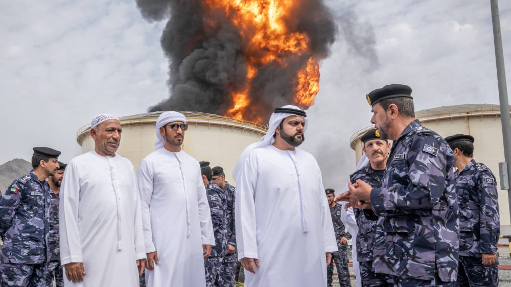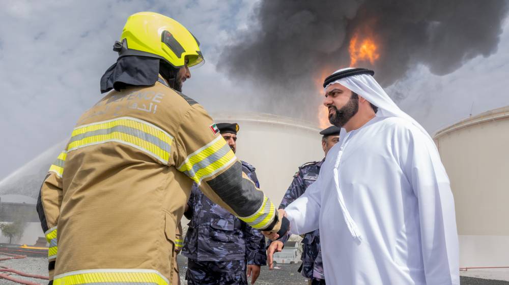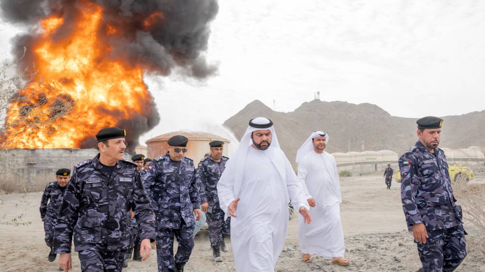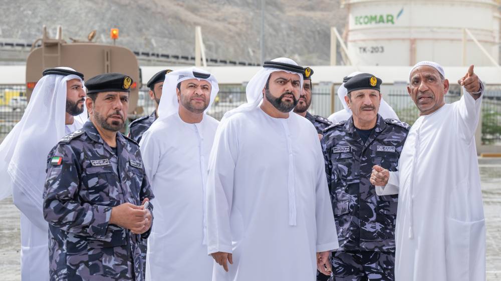 زار سمو الشيخ محمد بن حمد الشرقي ولي عهد الفجيرة، صباح اليوم، فرق العمل الميدانية وأبطال الدفاع في منطقة الفجيرة للصناعات البترولية (فوز).