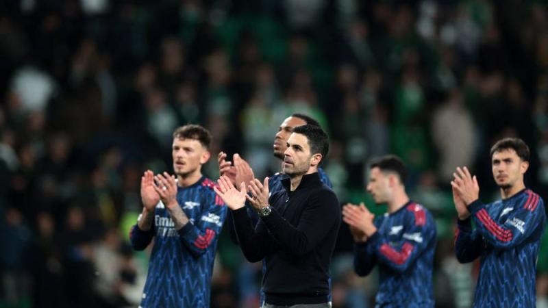 أرتيتا مدرب أرسنال يحيى الجماهير مع اللاعبين