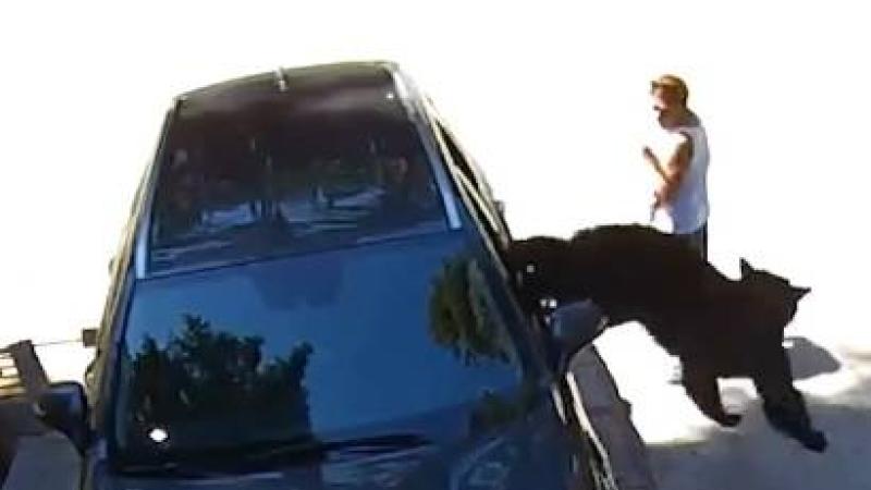 باغت دب أسود سيدة في ولاية كاليفورنيا الأمريكية، حين قفز فجأة من نافذة سيارة متوقفة على بُعد خطوات ضئيلة منها، في مشهد حبس الأنفاس وثّقته كاميرات المراقبة بالقرب من منطقة «ليك تاهو» الشهيرة.