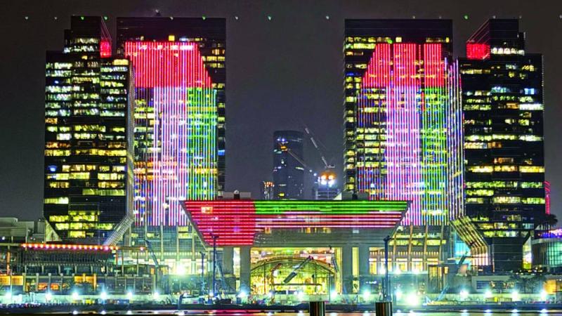 وتزينت أبراج العاصمة ودبي وكل الإمارات بألوان العلم، فيما ظهرت الواجهات الزجاجية لعدد من المباني وكأنها ترفع العلم بطريقة مختلفة، عبر الإضاءة التي غطت الطوابق من أعلاها إلى أسفلها، في رسالة بأن علمنا حكاية وطن نسجت بخيوط من ذهب.