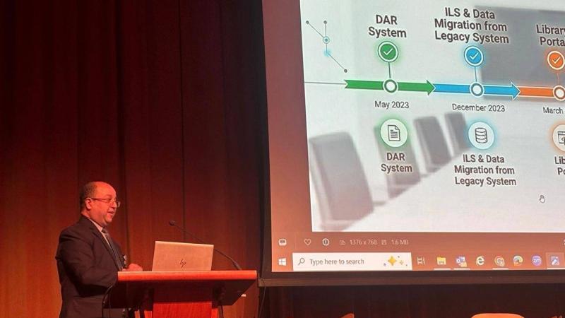 في السياق ذاته، قدم الدكتور رياض بن لعلام مسؤول مشروع التحول الرقمي في المكتبة، عرضاً تقنياً وفنياً تناول مسيرة تطوير البنية الرقمية للمكتبة الوطنية، موضحاً أن عملية التحول الرقمي استغرقت نحو خمس سنوات، جرى خلالها الانتقال من بيئة تقليدية إلى منظومة تقنية متقدمة.