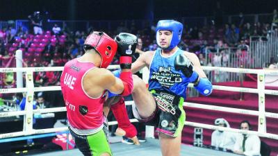 رياضة محلي 2 يونيو 2022 «نمر الحلبة» ونجم منتخب الإمارات إلى نهائي مونديال المواي تاي تأهل لاعب منتخب الإمارات، إلياس حبيب علي «نمر الحلبة»، إلى نهائي وزن تحت 81 كجم للخفيف الثقيل بعد فوزه على بطل العراق، مصطفى التكريتي «أسد الرافدين»،