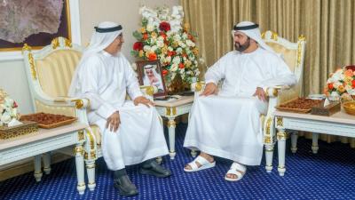 عادي أخبار من الإمارات من الشيوخ وكبار المسؤولين وأعيان البلاد والمواطنين والمقيمين الشرقي ومحمد بن حمد يتقبلان التهاني بشهر رمضان استقبل صاحب السموّ الشيخ حمد بن محمد الشرقي عضو المجلس الأعلى حاكم الفجيرة، بحضور سموّ الشيخ