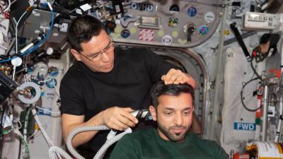 أخبار من الإمارات 29 مارس 2023 أول تسريحة شعر لسلطان النيادي على متن المحطة الدولية نشر مركز محمد بن راشد للفضاء صورة لرائد الفضاء الإماراتي سلطان النيادي، على متن محطة الفضاء الدولية، وهو يقوم بأول تسريحة شعر. وأوضح المركز أن آلة