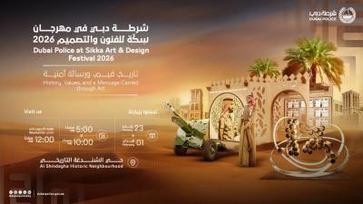 محطات 23 يناير 2026 معروضات وورش لشرطة دبي في مهرجان «سكة للفنون والتصميم» تُشارك القيادة العامة لشرطة دبي في مهرجان سكة للفنون والتصميم، والذي تنظمه «دبي للثقافة» بنسخته الـ14، بين 23 الجاري و1 فبراير/شباط المقبل بحي الشندغة