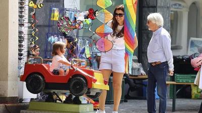 رياضة دولي 6 أغسطس 2022 ابن ايكلستون على خطى أبيه شوهد عملاق الفورمولا1 السابق البريطاني بيرني ايكلستون (91 عاماً) برفقة زوجته البرازيلية فابيانا فلوسي (44 عاماً) وابنهما «أيس» (سنتان) في نزهة عائلية