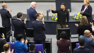 أوكرانيا 7 يونيو 2024 زيلينسكي للمشرعين الفرنسيين: أوروبا «لم تعد تنعم بالسلام» قال الرئيس فولوديمير زيلينسكي للمشرعين الفرنسيين الجمعة، إن أوروبا لم تعد قارّة تنعم بالسلام منذ اندلاع الحرب في أوكرانيا، واصفاً الرئيس الروسي