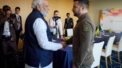 العالم 20 مايو 2023 رئيس وزراء الهند لزيلينسكي: نبذل كل جهدنا لإنهاء الأزمة الأوكرانية التقى الرئيس الأوكراني فولوديمير زيلينسكي، رئيس الوزراء الهندي ناريندرا مودي، السبت، بمدينة هيروشيما اليابانية، في اجتماع هو الأول بينهما منذ بدء